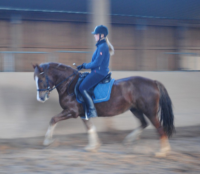 Mehr durch Zufall fanden wir diese kalibrige Stute mit tollen alten Blutlinien, so wie wir sie lieben. Trotz etwas undurchsichtiger Vergangenheit, welches ihre Ausbildung betraf , zog sie bei uns ein. Wir sollten nicht Enttäuscht werden und Meg stellte sich als sehr liebenswertes Pony heraus, welches nur die Sicherheit ihres Reiters braucht.