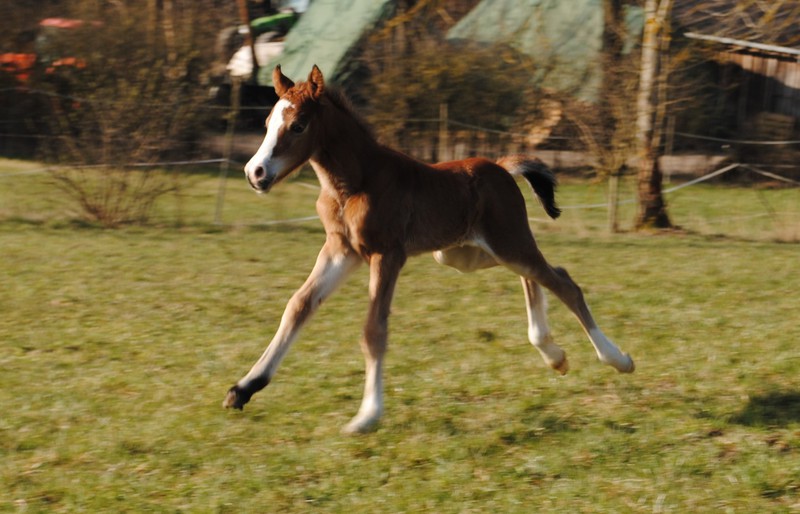 Sehr aufgeschlossenes Fohlen in schöner braunen Farbe und typvollem